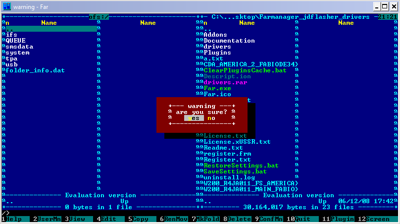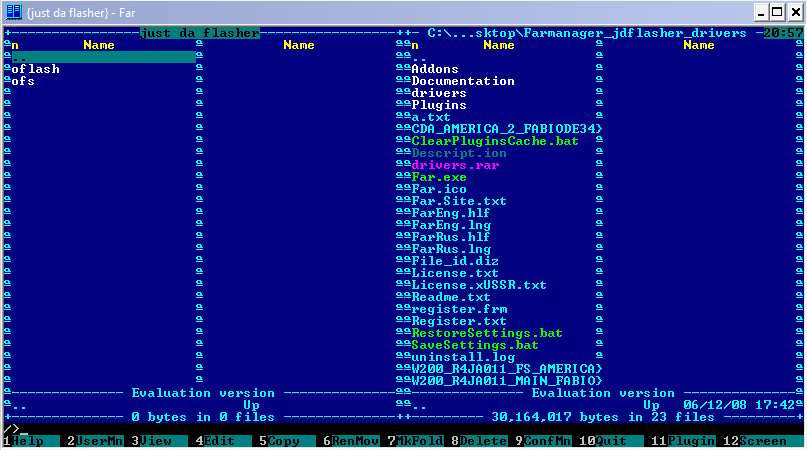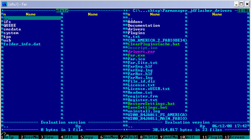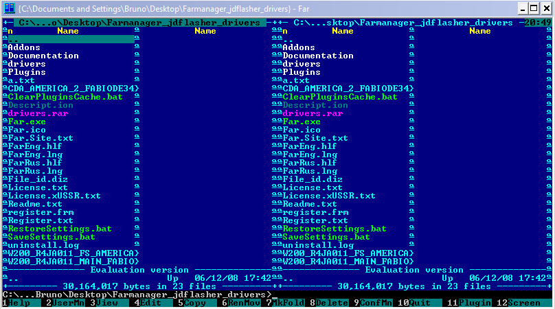 Tendo o driver instalado, desconecte o celular e tenha certeza de que está desligado. Agora, abra o Far.exe. Algo assim aparecerá: